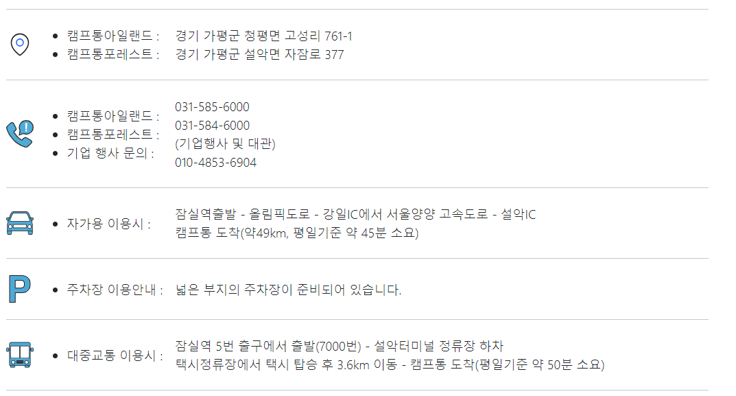 참고로 캠프통의 경우 날짜에 따라 가격이 다르므로 사이트를 참고하시기 바랍니다.