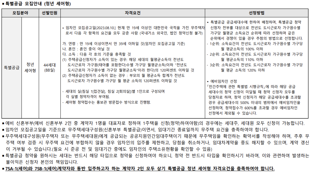 이랜드 피어 둔산의 신청자격에 대해 알려드리겠습니다. 이 곳의 경우 일반공급과 특별공급으로 나뉘게 되는 신청자격과 절차가 조금씩 다릅니다. 특별공급(청년 셰어형)의 경우 홍보관 방문접수를 해야 됩니다.