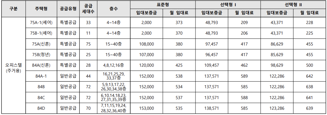 공급타입(평면도) 및 임대기간(조건)