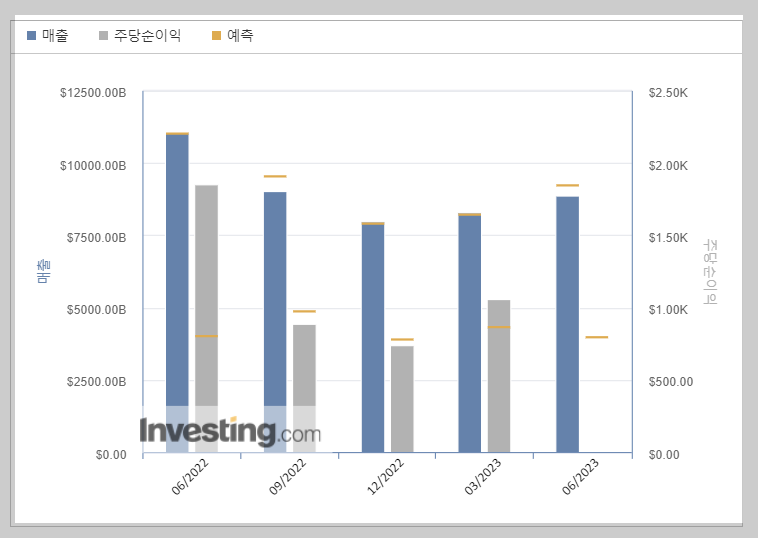 - 5월 15일에 발표된 주당순이익이 예측치보다 크게 상회하였습니다. 매출에 비해서 주당순이익이 점차 증가 되는 것 같습니다. 자재 및 인건비 절감 등 다양한 방면에서 절감을 한 것 같습니다.
