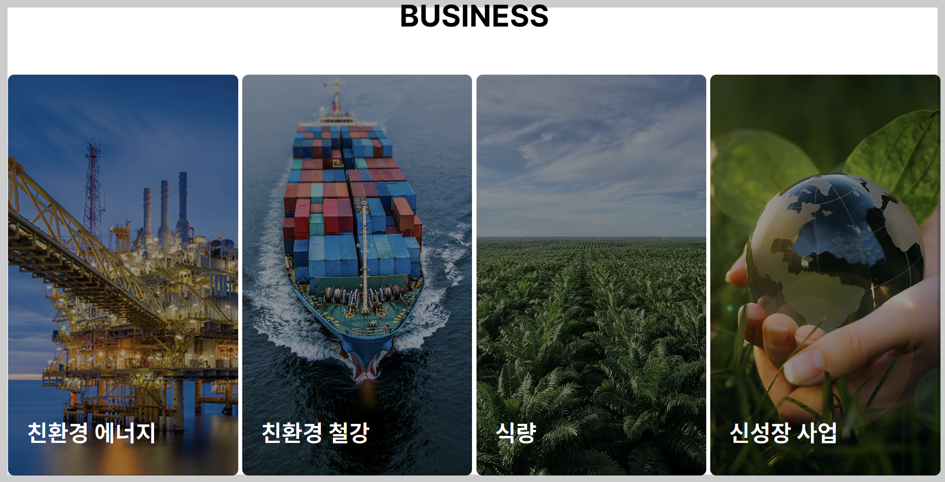 - 무역업을 중심으로 자원개발, 인프라 개발 및 운용 등의 사업을 영위하고 있으며, 철강, 곡물, 화학, 이차전지소재, 친환경부품, 천연가스부품, 천연가스 등이 주요품목입니다.