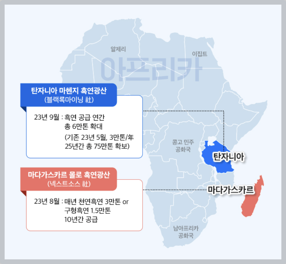 1. 포스코인터내셔널, 연 9만톤 흑연 공급망 구축(기존 공급능력에서 200% 확대)[9월 4일]