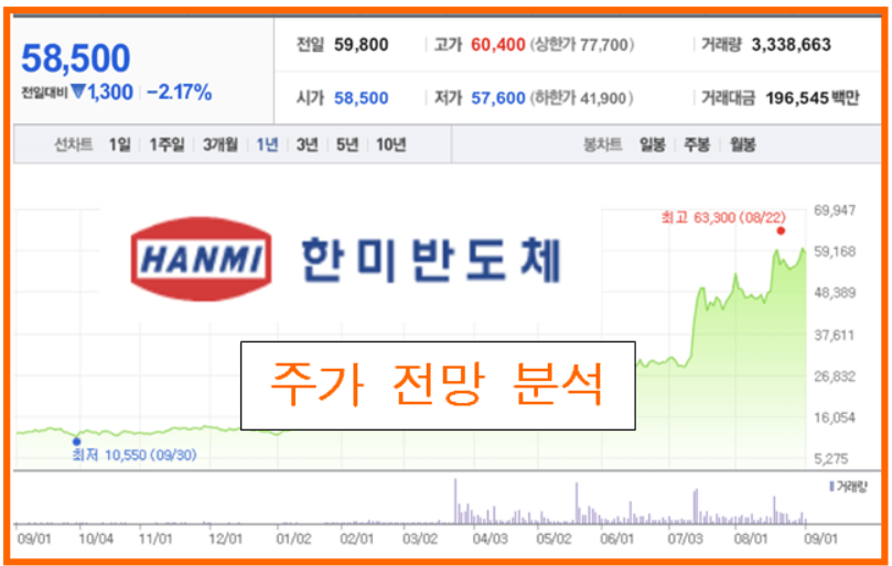안녕하세요. 부자되고 싶은 은성입니다. 오늘 주식관련 포스팅은 작년 9월부터 지속적인 상승을 하고 있는 한미반도체입니다. 다른 반도체주식(삼성전자, 하이닉스 등)은 주가상승이 부진한 반면 한미반도체는 외국인들이 지속적으로 매수를 함에 따라서 크게 상승을 한 상태인데요. 앞으로 전망이 어떻게 될지 알아보도록 하겠습니다.