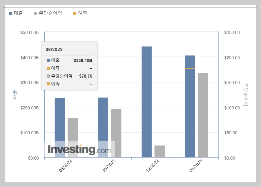 - 상단의 사진은 인베스팅닷컴에 나와있는 실적 그래프와 예측치와 매출이 나와있습니다. 올해부터 매출과 주당순이익이 크게 증가를 했는데요. 앞으로로도 지속적인 매출과 꾸준한 성장세가 예상이 되고 있습니다.